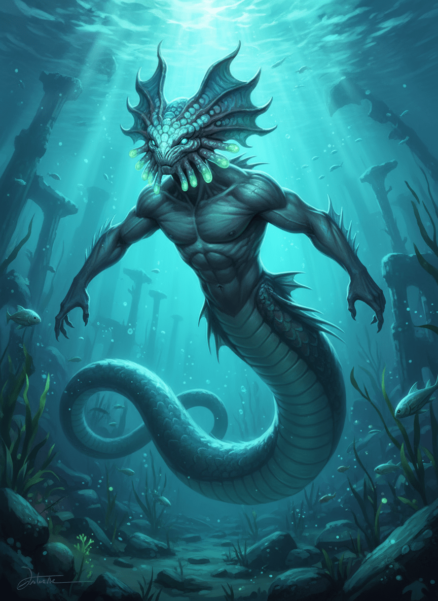 On vit au loin que la sentinelle revenait dans une nage rapide, étant accompagnée par le régent Aïyishss. Arrivant à leur portée, le régent se plaça directement devant Salyins. Sans exprimer quoi que ce soit, il se concerta avec lui, comprenant quel était l’honneur d’avoir cette présence qui venait porter intérêt à leur égard.